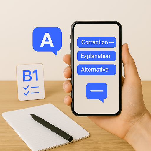 The correction and explanation format is exactly what I needed, and I could choose my level. It’s like having a patient teacher who never gets tired of explaining — for any language.